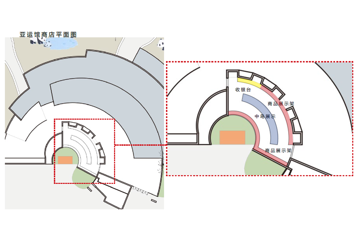 本次项目的北京动物园熊猫商店位于亚运熊猫馆内西区,占地150平方米。