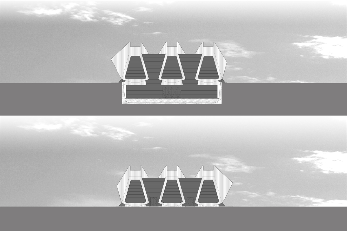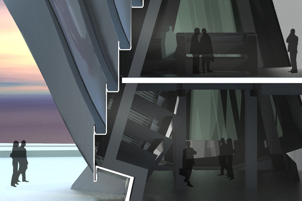用地是一个狭长地块,周围都是简洁务实的、功能主义的建筑。本建筑对于企业来说是一个礼仪性建筑,它是企业的会客厅、博物馆、展览馆。从功能定位上,它应该成为园区的焦点,表现用友文化的另一面——浪漫诗意,丰富整个园区的建筑内涵,使园区成为高科技园区、生态园区,而且是一个人文园区。