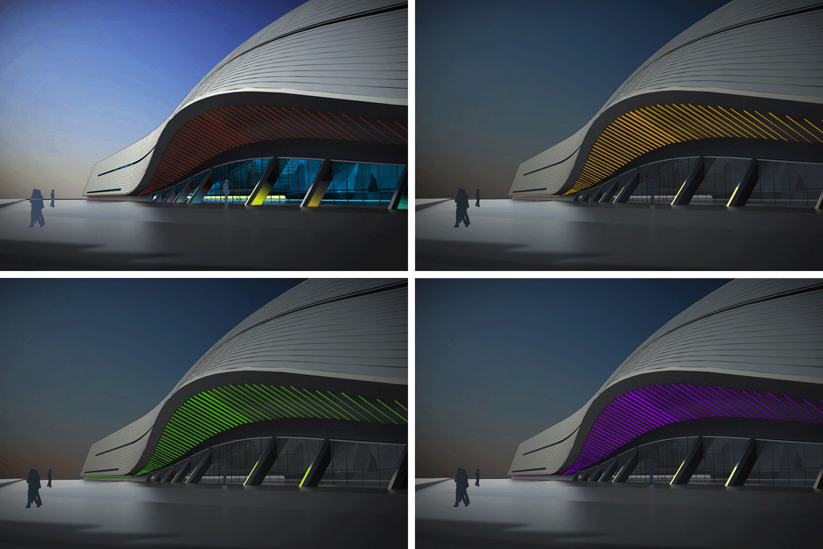 本项目的设计创意是“用友江山”。三个起伏的长条造型,参差错落,状如山水。
