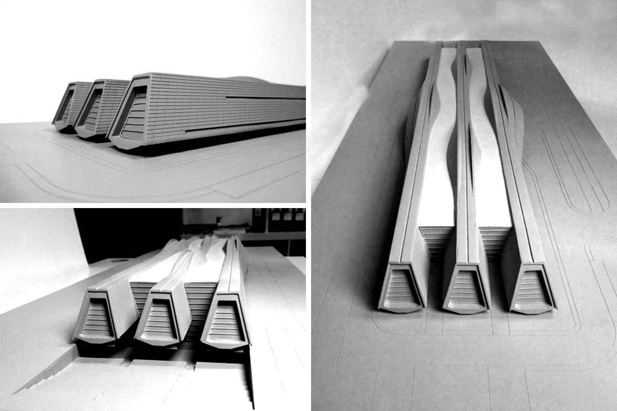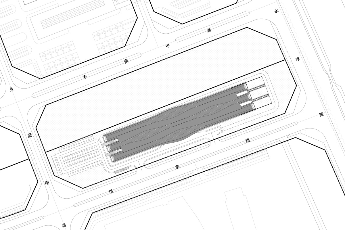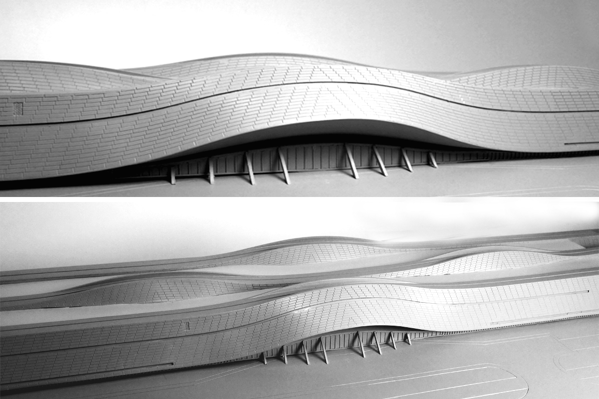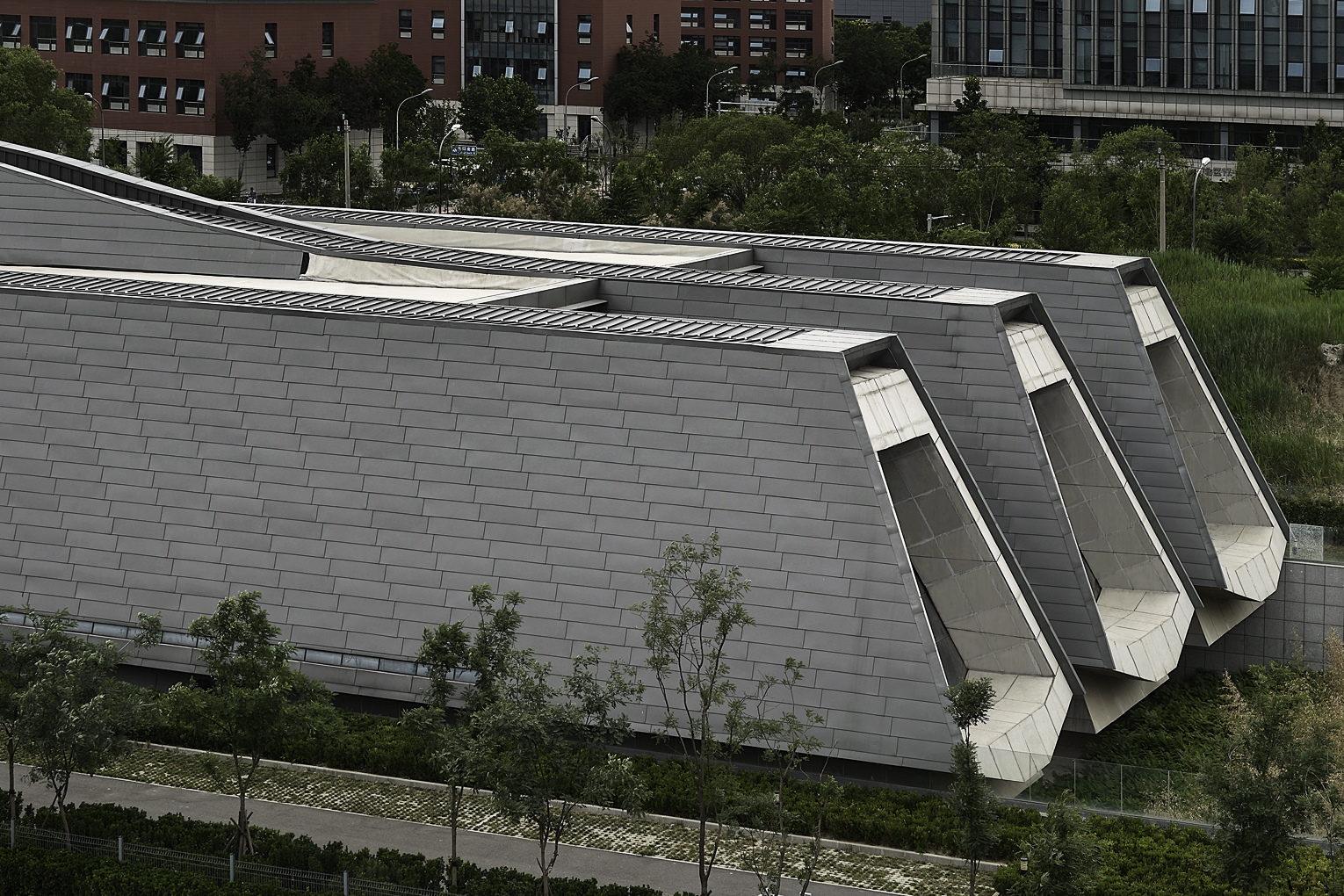 “用友江山”主题展览中心,位于亚洲最大软件技术基地北京中关村永丰科技园内的用友软件园。 用友当属国内软件企业的龙头老大,作为展示企业规模实力与成就的展览中心,本项目的设计创意是围绕“用友江山”展开,用地处于用友园区腹地,三个波浪状连绵起伏的长条造型,长度逾330米,宽度仅30米,参差错落,状如山水,昭示其纳百川,统天下的企业雄心。