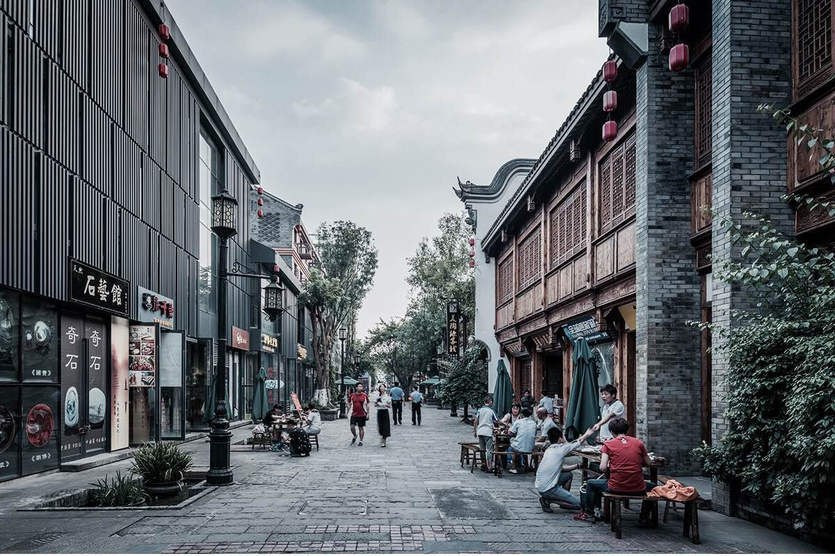 人们对古镇、古街区、异国风情的好奇、兴趣、欣赏,都源于其自身文化背景与欣赏对象文化背景的距离感。不同文化场景的对比和碰撞,是有距离感的场景式建筑的体验特点。城市的魅力在于多种信息的积累和传递,将属于不同时代的文化场景并置,把多元的建筑元素杂揉在一起,可以在更大程度上吸引人流,激发街区活力。