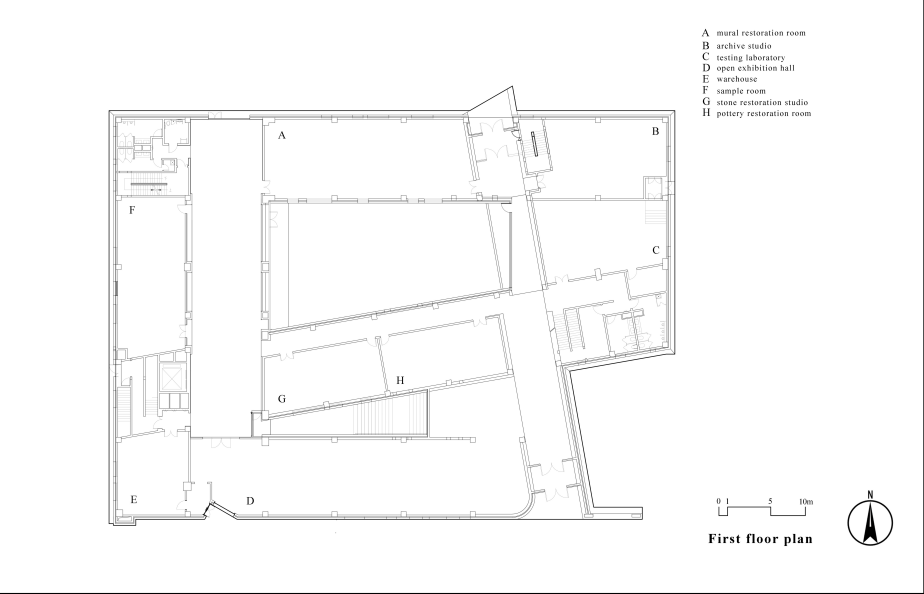 云冈石窟文物保护中心承载着保护云冈文化遗产和进行现代化科研工作的重要使命。其背景复杂,历史和文化、空间和公共交通等问题都在这里交织。我们让这个建筑能够最大限度的创造科研人员和历史文化之间的交流平台,提供科学与文化并存的学术研究氛围。