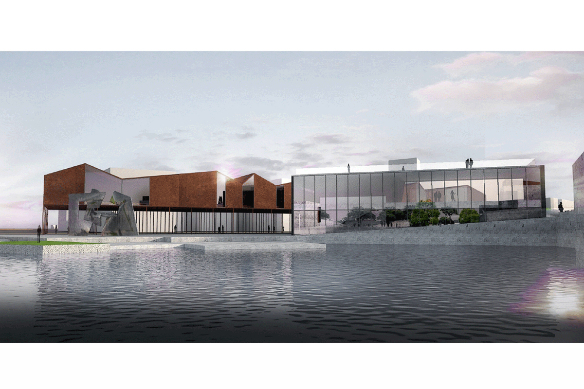 该项目基地南侧临规划路经十路,北侧紧邻新建美术馆用地,西侧为杨家湖,为项目提供良好的自然条件。