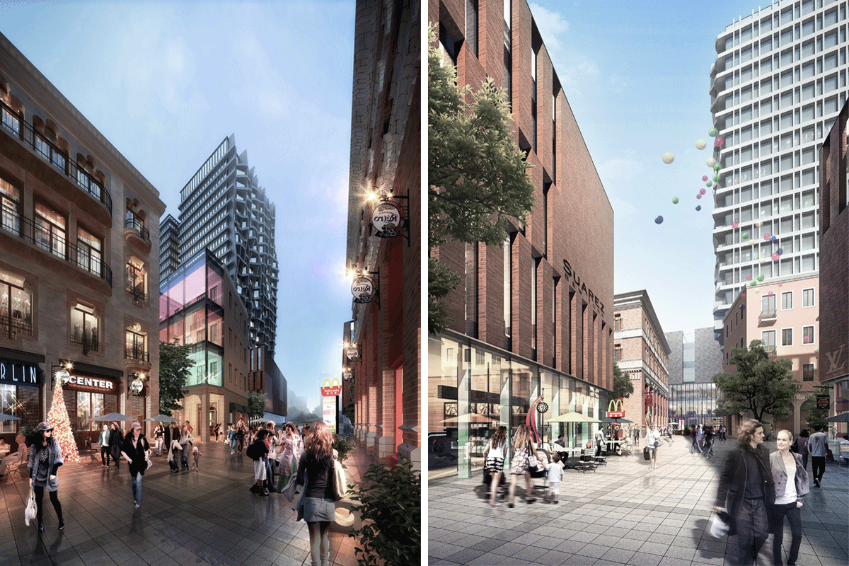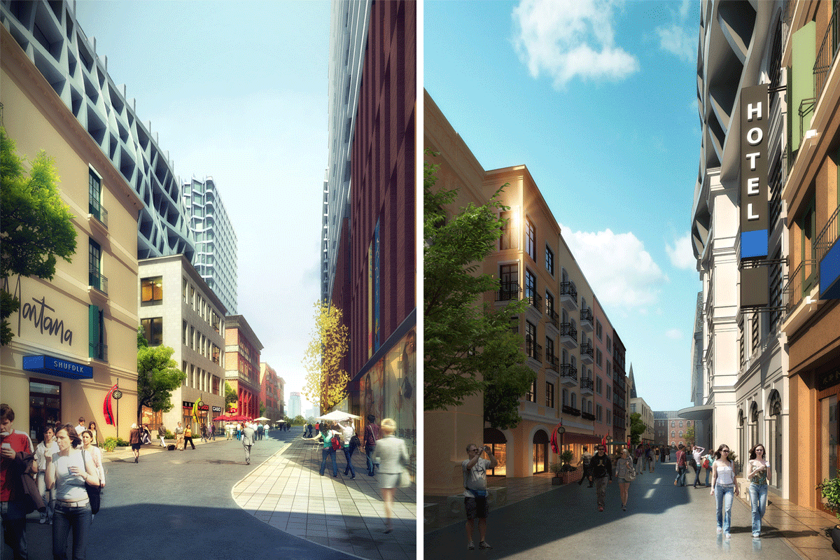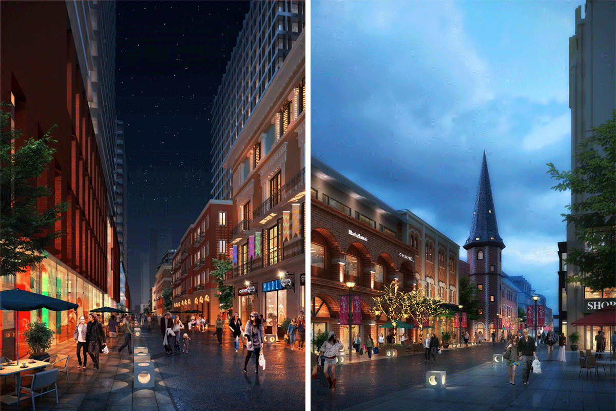 Three facade symbol elements that demonstrate Europe culture in this project are Culture symbol element, Shortened notation and pure Contemporary symbol element. Under the modern institutional environment and operation mode, reflect the nomadism space method in the commercial district. Apposite multicultural scenes from different era and mix multi-architectural elements together, will attract more costumers and stimulate the energy of the block.