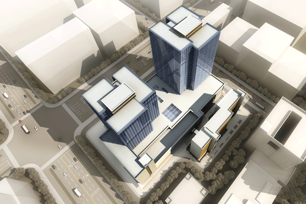 本项目建设用地面积:19933.3平方米。总建筑面积149801平方米,地下建筑面积:30656平方米,地上建筑面积:119145平方米,商业建筑面积:40913.79平方米,办公建筑面积:78231.21平方米,停车位530辆.