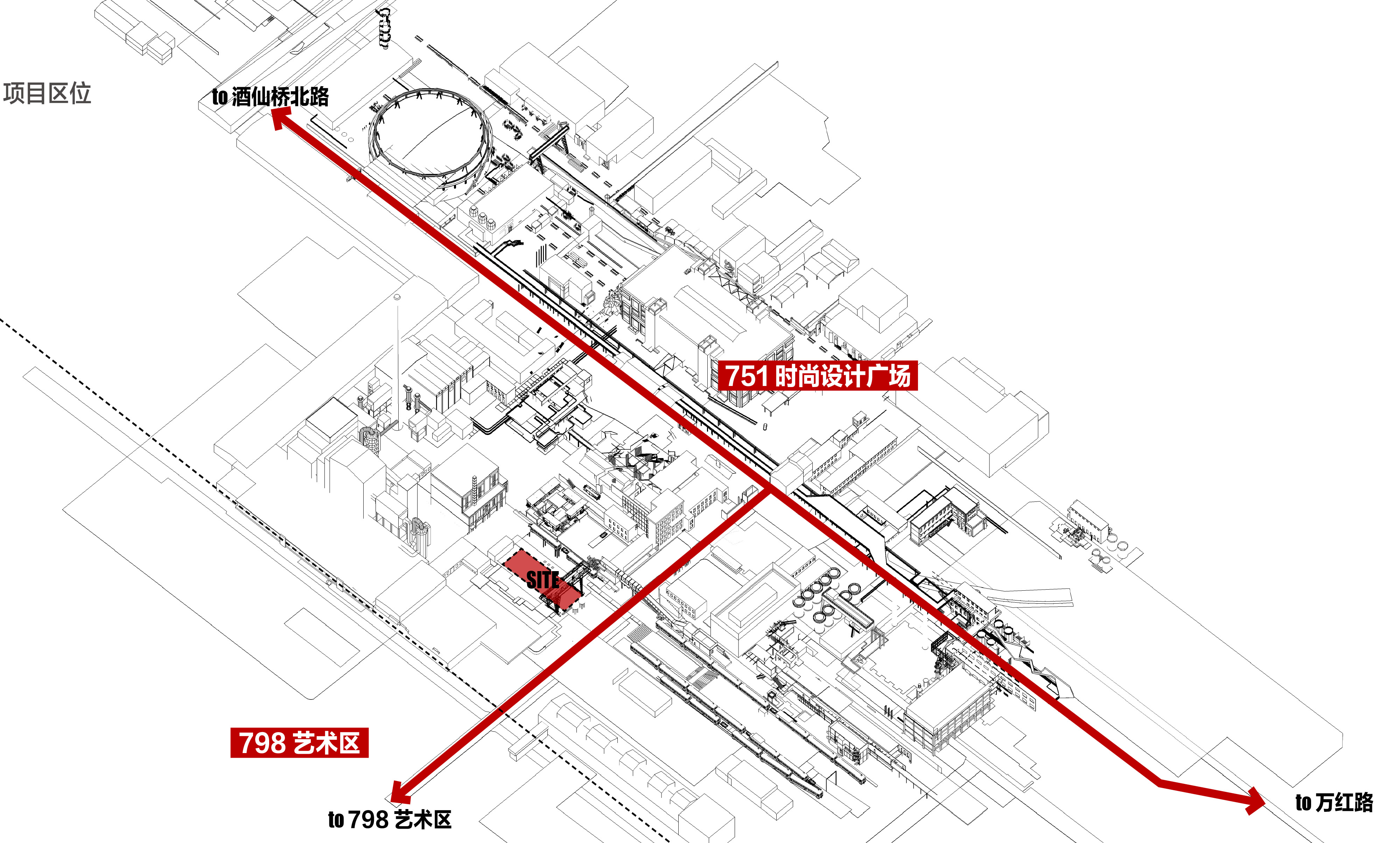 本项目位于751D▪PARK北京时尚设计广场火车头广场北侧,原址为原751厂洗煤池灰,是751D▪PARK北京时尚设计广场“十字”商业街区重要节点建筑,为丰富园区内业态,增加区域商业活力,拟在此处建设751图书馆。