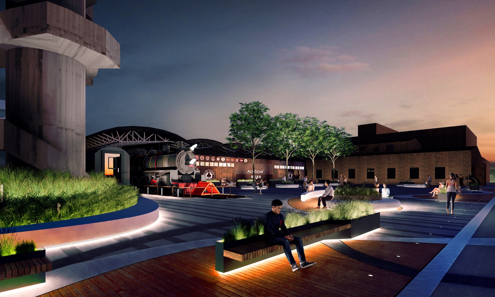 6.保证工业遗迹的夜间照度,结合广场周围的商业业态,增加区域夜间活力。
