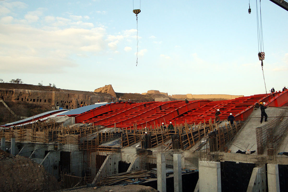 云冈石窟陈列馆座落于云冈景区西部,占地面积15000平方米,建筑面积6640平方米。该馆于2009年6月开工,2010年9月主体完工,2011年9月底完成布展。