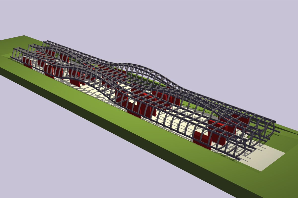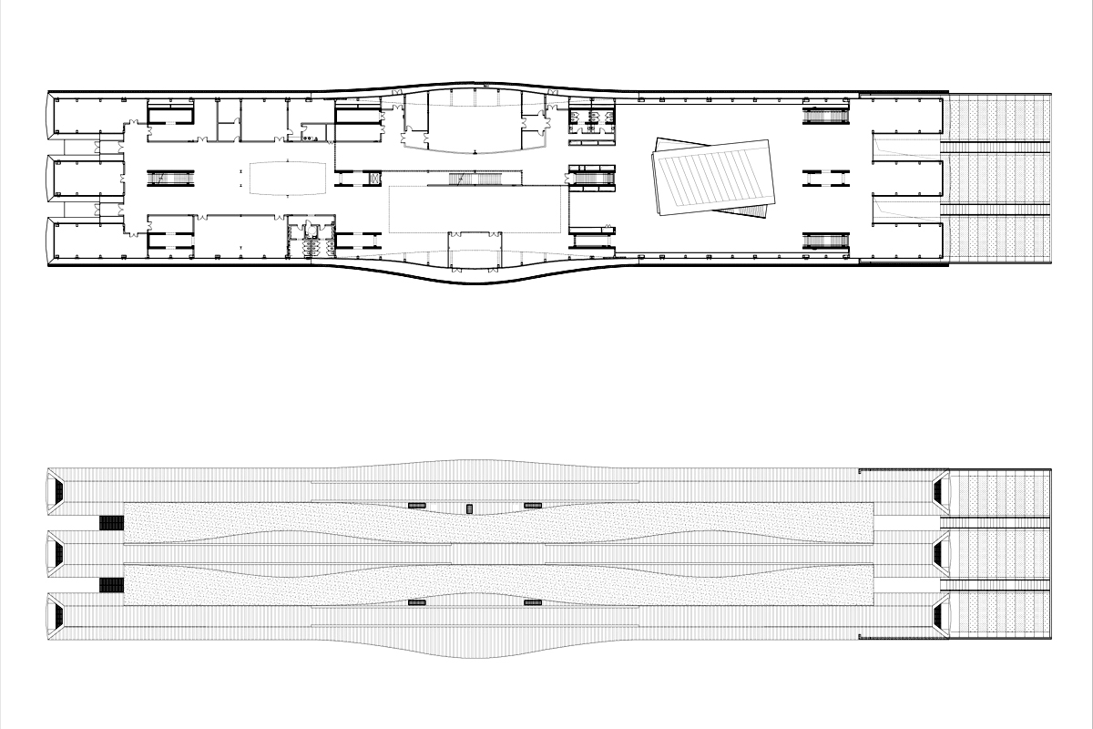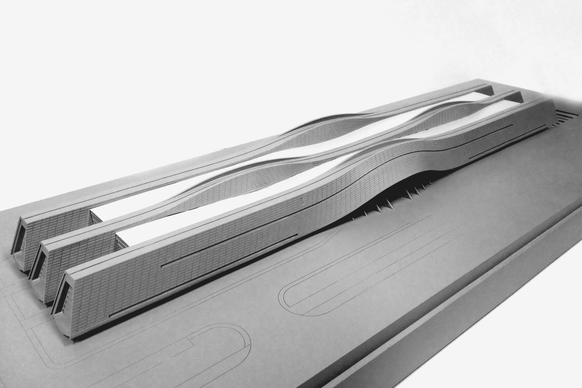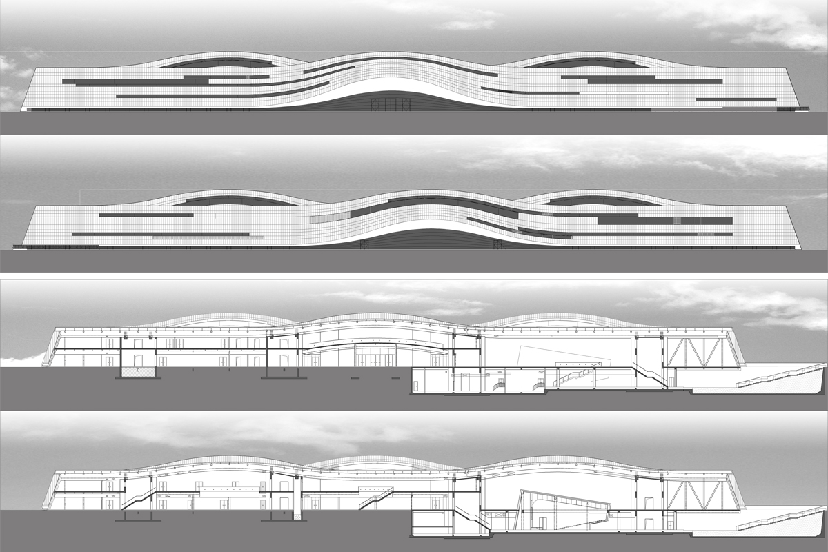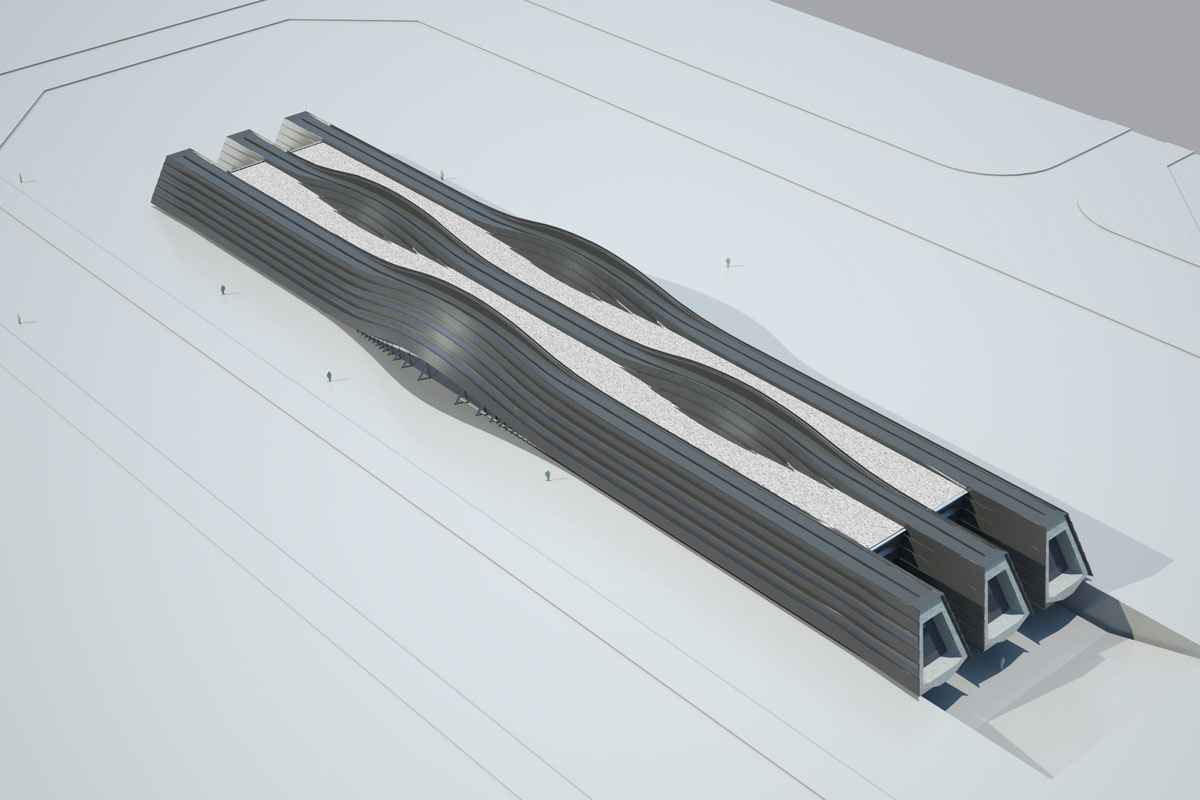 “用友江山”主题展览中心,位于亚洲最大软件技术基地北京中关村永丰科技园内的用友软件园。 用友当属国内软件企业的龙头老大,作为展示企业规模实力与成就的展览中心,本项目的设计创意是围绕“用友江山”展开,用地处于用友园区腹地,三个波浪状连绵起伏的长条造型,长度逾330米,宽度仅30米,参差错落,状如山水,昭示其纳百川,统天下的企业雄心。