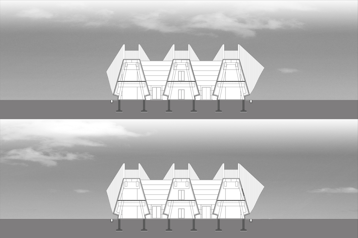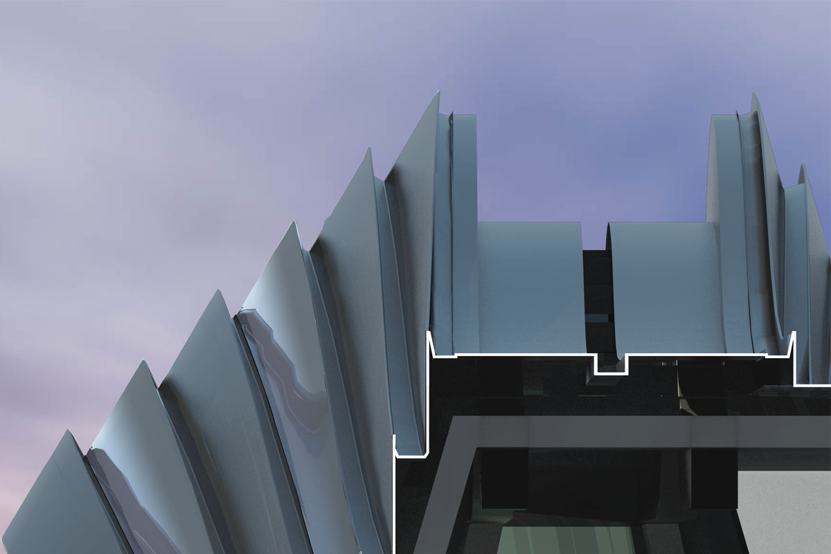 本项目的设计创意是“用友江山”。三个起伏的长条造型,参差错落,状如山水。