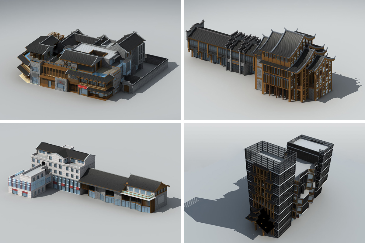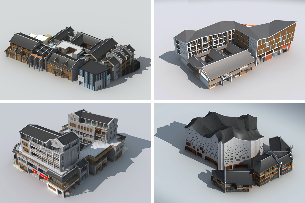 本项目是一个商业为主、有一定居住类功能的综合项目。其中居住类建筑多为会所、旅馆、工作室或者第二居所。由于洛带古镇强大的品牌和气场,使本项目具有更多旅游地产的特性。因此设置具有更多文化符号的场景式建筑是必要的,以满足旅游人群的对特殊文化场景的体验需求。同时,场景式建筑与古镇原街区建筑容易协调,可以更好的实现项目的社会效益和经济效益。