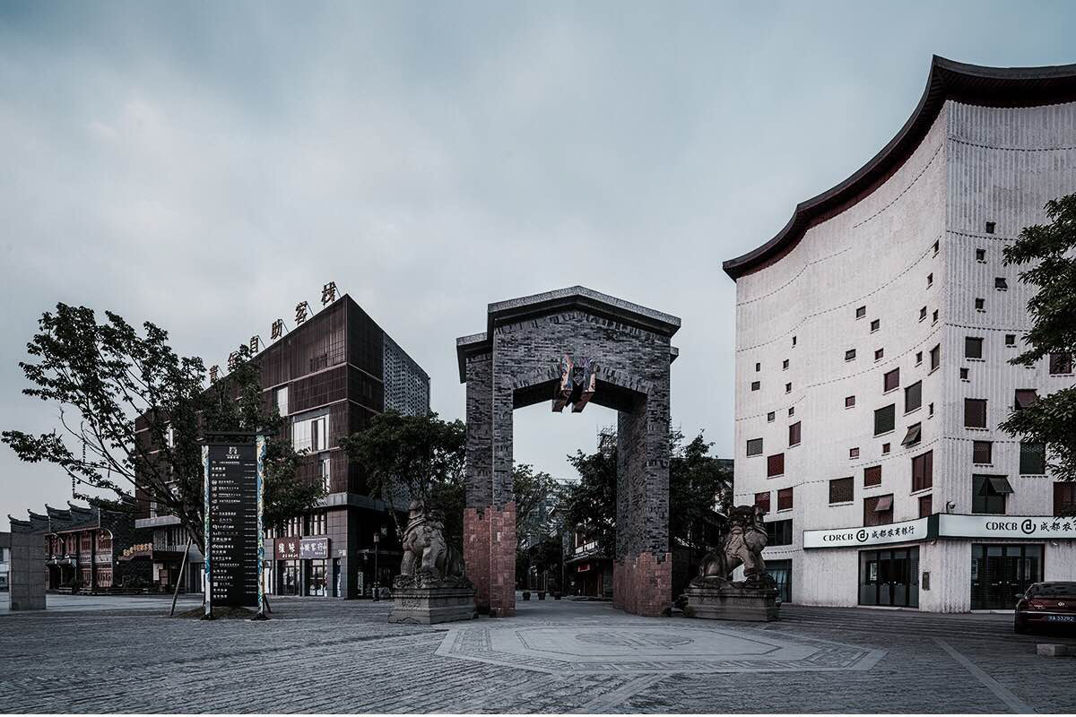 洛带古镇是成都周边著名的古镇旅游品牌,本项目紧邻古镇核心街区。本项目总建筑面积17万平米,其中一期建筑面积2.8万平米。建筑功能主要是各种商业及一定的居住类功能,包括餐饮、休闲、酒店、会所、工作室等,是一个旅游地产项目。本项目应用游牧空间理论,通过对自然发生城镇模式的模仿,来塑造新街区的活力。自然发生的城镇由于群体中个体自由意志的多元化表现出建筑形态和功能的多元化、非均质的特点,自然真实,富于魅力。本项目投入巨大的设计精力,采用功能综合、风格杂糅的策略,控制建筑细部设计质量,建筑立面划分成多个片段,各不相同。遵循城镇的自然发生机制,必然会促生城镇活力,从而获得更大的经济效益和社会效益。