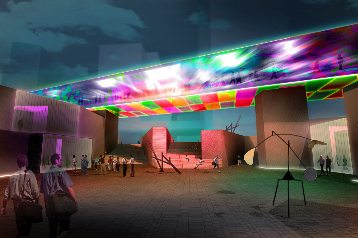 当代艺术馆不同与传统的美术馆和博物馆,其当代性体现在彻底的开放性与包容性。首先是一个开放的城市公共空间,是城市精神的集中,而且要理所应当地融入属于大众的消费系统中,有可营业的餐馆,茶馆,图书馆、多功能厅,书店,小商店,开敞的室外公园,以确保其开放性和有效性,而关键的展览功能是引发这一切市民活动的导火索。它即使面积再小,也能够在微观层面上对城市的一个局部完成生活的重组,并激化碰撞出意外的结果。这种当代的方式必然需要当代的建筑语言形式。