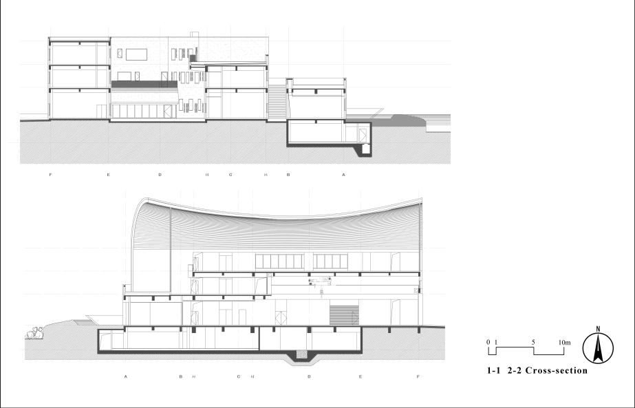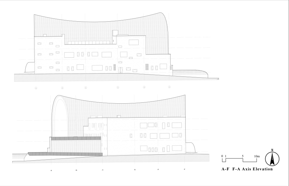 从建筑单体上,该方案不仅和周边环境协调共生,特殊处理的拱形外皮又能形成建筑的独特符号,突出特有的云冈元素,提升区域整体形象。最终该项目在发扬文化云冈、科学云冈、绿色云冈的同时,使云冈石窟进一步发挥世界文化遗产的作用。