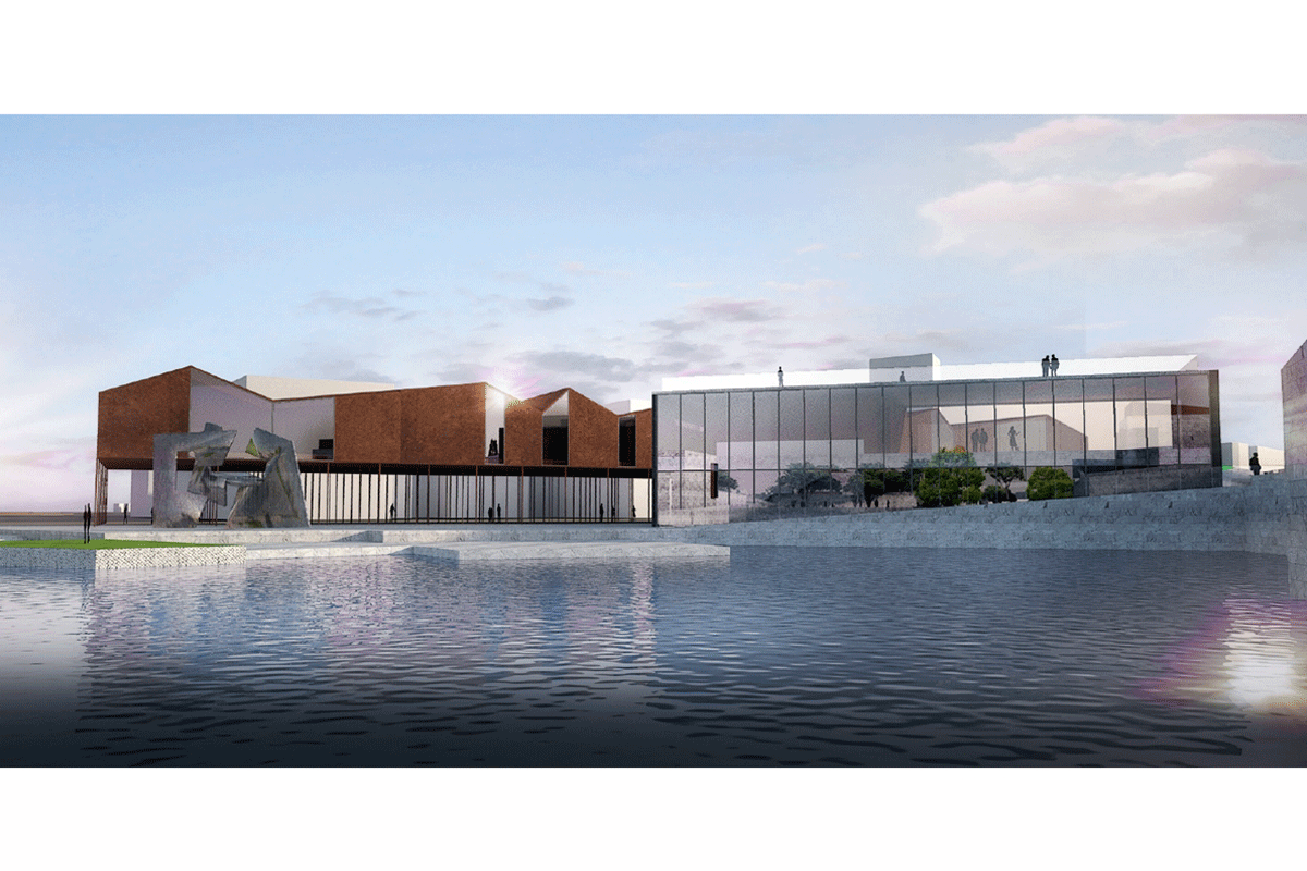 该项目基地南侧临规划路经十路,北侧紧邻新建美术馆用地,西侧为杨家湖,为项目提供良好的自然条件。