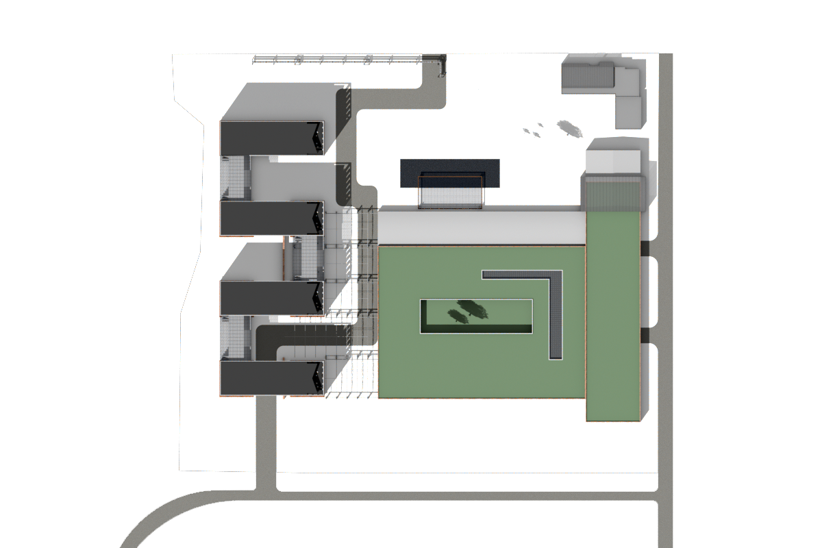 从这个核心出发,我们设计本项目地块西侧的新建筑的原则是安静。在外形上,抛弃高低错落的建筑布局,选择均一的高度;在色彩上,抛弃浓墨重彩,选择朴实的颜色。建筑本身有朝气,有规模,同时又很安静,不会喧宾夺主,能够很好地融入现有建筑的风格,衬托出旧厂房的历史感,强调新旧之间的对比。