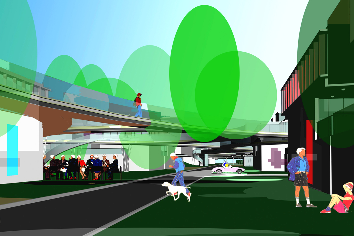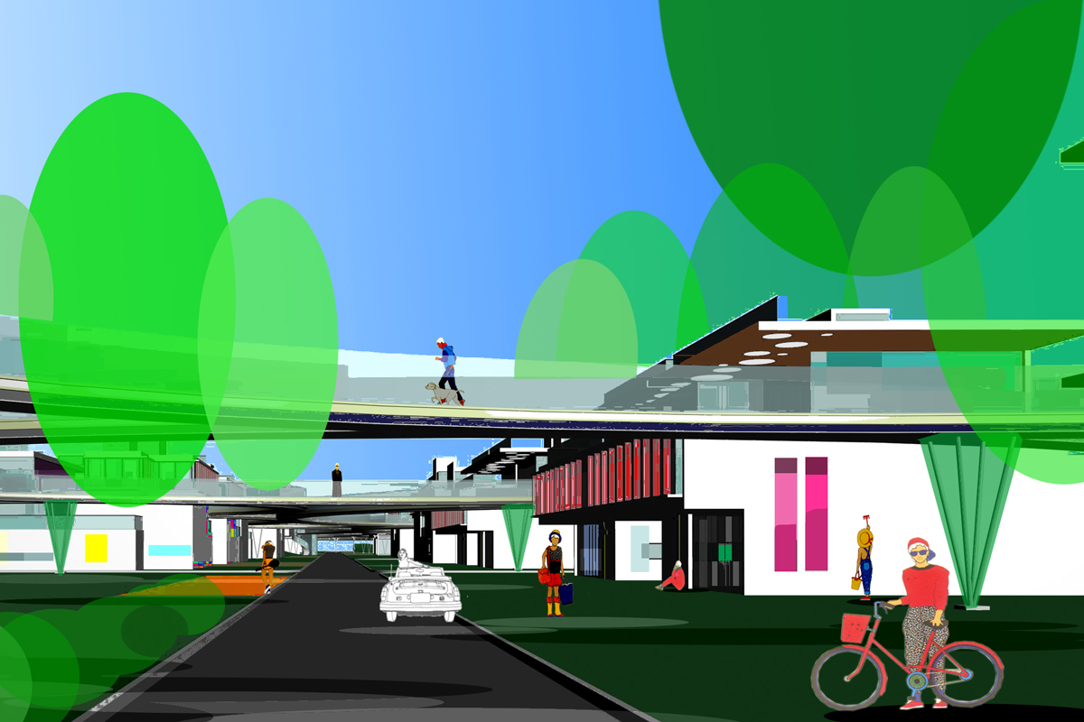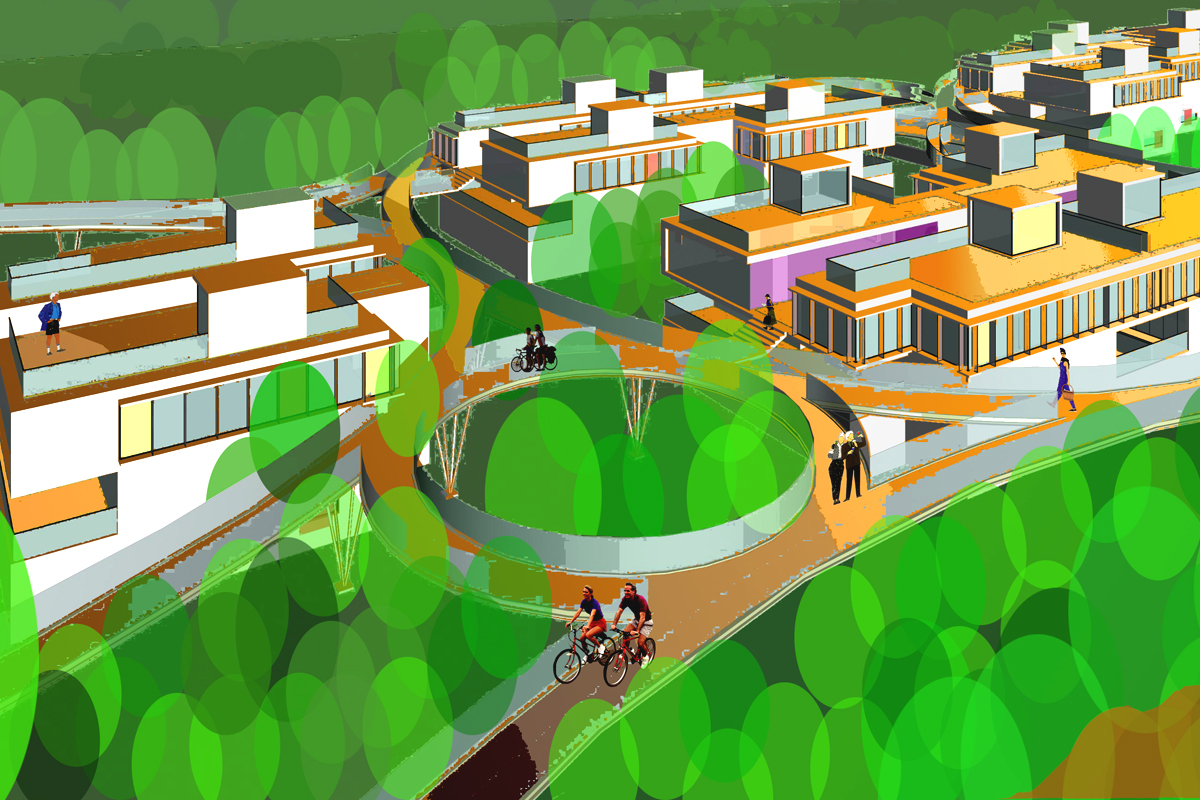 Based on the present allocation of trees and road network, the entire layout partitioned different zones by functions, but not isolate from the whole area, to form a unity. In the function area, we categorize the estate into 3 parts: “Dong”, sub-”Dong” and “Jing”. We utilize road network and the center green space to connect different function zones, and also avoid them from affect each other.