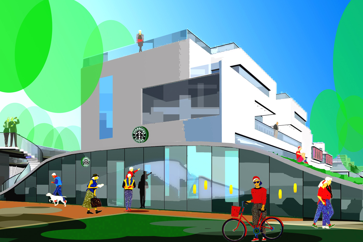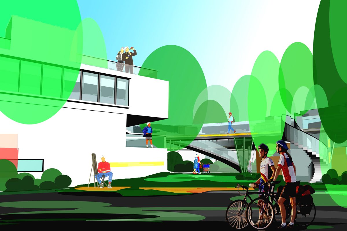 In the park planning, to create the original ecological system, we kept a lot of existing trees to set off buildings into greens.